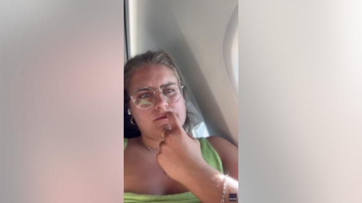 Fanny Gagnon O’Donnell (pictured here) was on a flight from Spain to Germany when the person next to her in the middle seat continued to cross into her seat. (Fanny Gagnon O’Donnell/Storyful)
