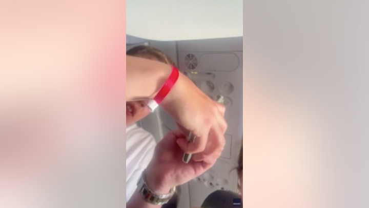 In the video, Gagnon O’Donnell can be seen sitting calmly as the other passenger reaches across her seat space.