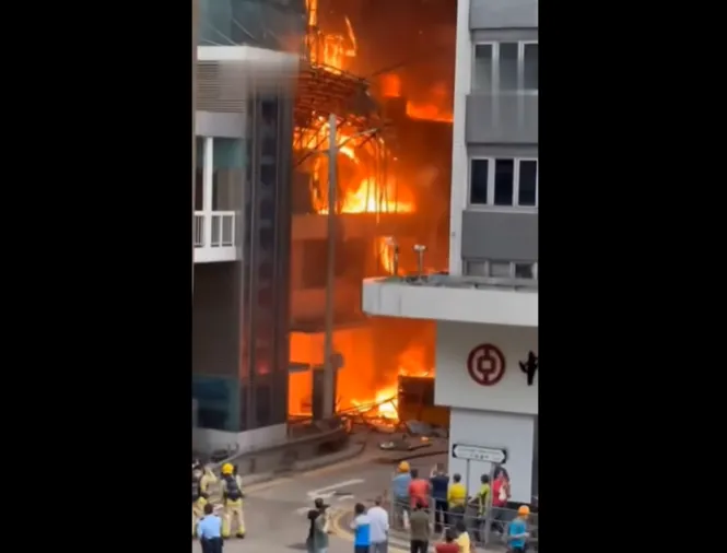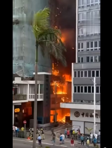 According to reports, the fire began around 4:24 p.m. at the Chinachem Tower on Connaught Road Central. Within minutes, flames spread rapidly across the bamboo scaffolding that covered the exterior of the skyscraper. Witnesses described seeing bright orange flames racing up the side of the building, while debris fell onto the street below.