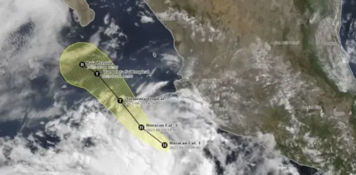 The hurricane’s cloud bands are spreading widely, generating very heavy rains in Jalisco, Colima, and Michoacán (25 to 50 mm), as well as showers in Nayarit (5 to 25 mm). This rainfall could lead to landslides, river and stream overflows, and flooding in low-lying areas.
