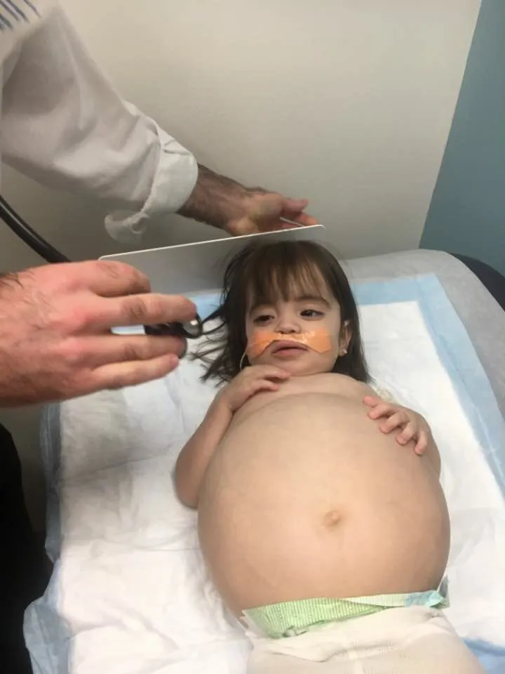 Maddy Rbykin’s condition had caused her stomach to swell and for the first 18 months of her life she was in and out of hospital.