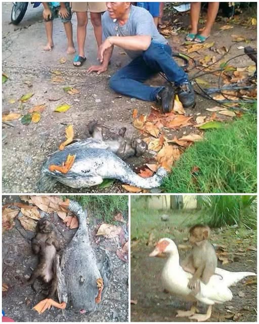 In 2015, in Chonburi, Thailand, Somsak Puangchang lived with two extraordinary pets: Michael, a monkey, and Samlee, a goose. Despite their very different instincts and behaviors, the two became inseparable companions, always by each other’s side. Observers often saw Michael riding on Samlee’s back as they wandered through the garden, a heartwarming and unusual sight. Their bond quickly became familiar and endearing to Somsak and the neighbors.
