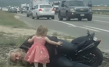 Being so tiny, the sight of a little girl in a princess dress crouched beside an unconscious biker off Highway 84 stunned both medics and passing drivers. Her small hands …